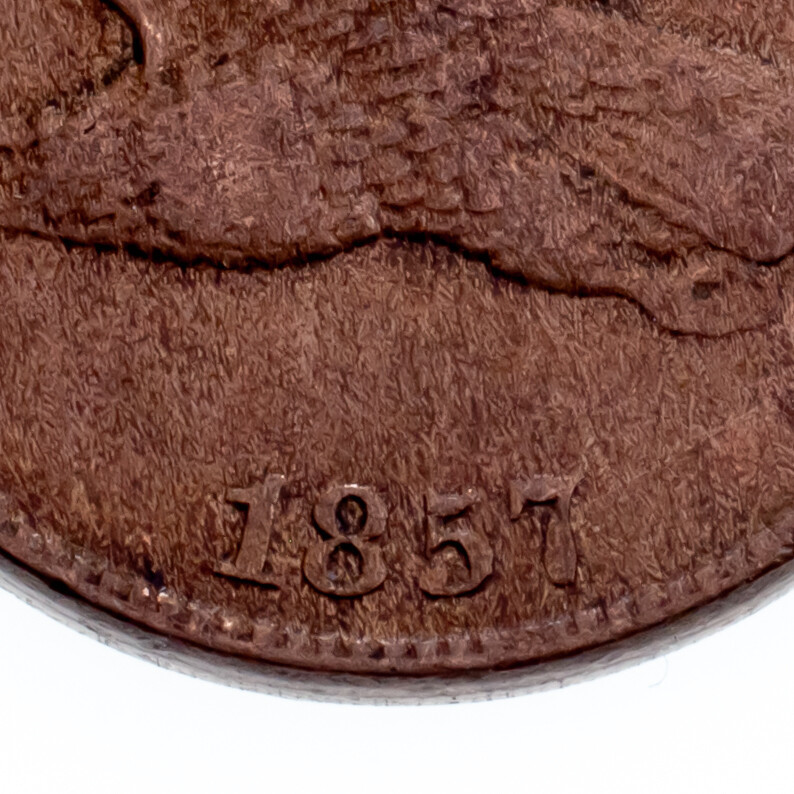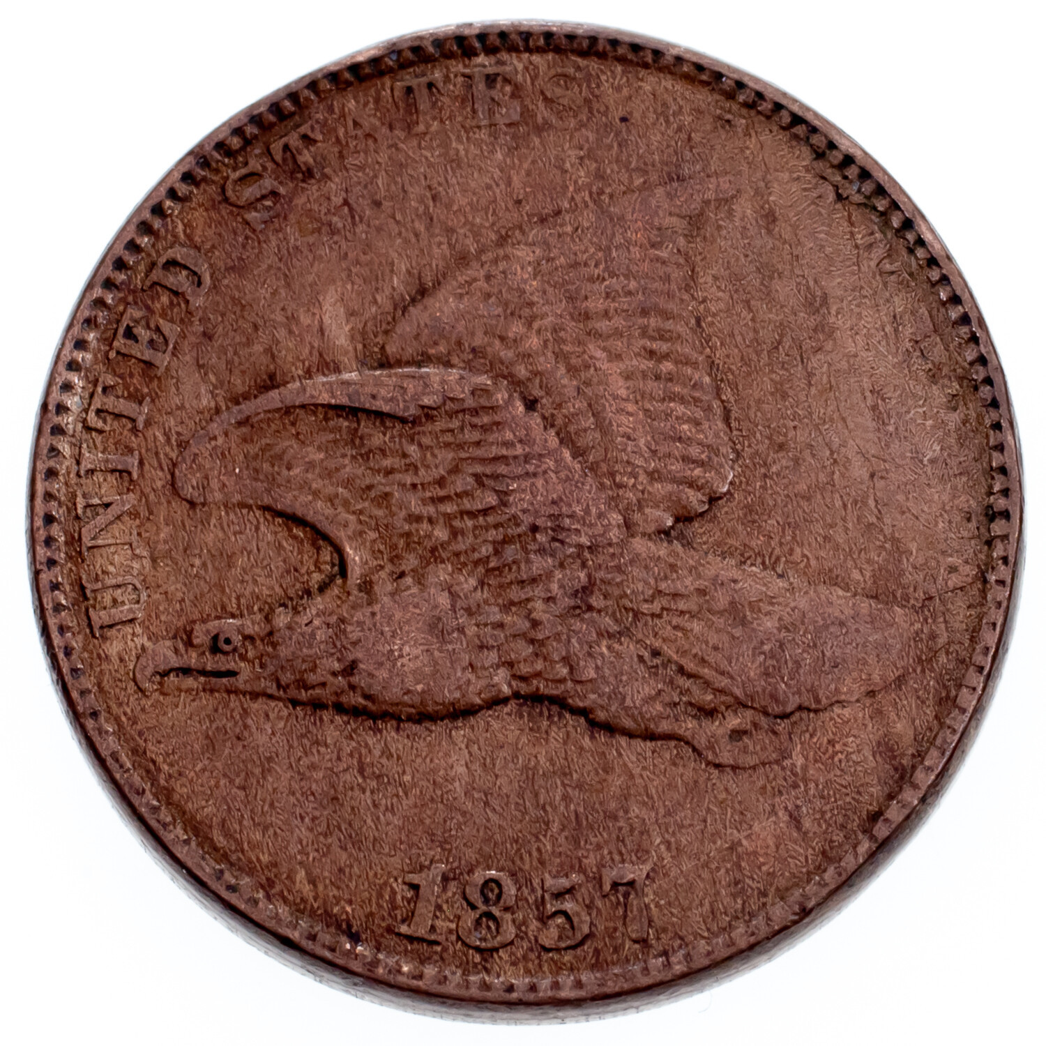 1857 Flying Eagle 1C Condition VF, XF en usure, Ding au revers