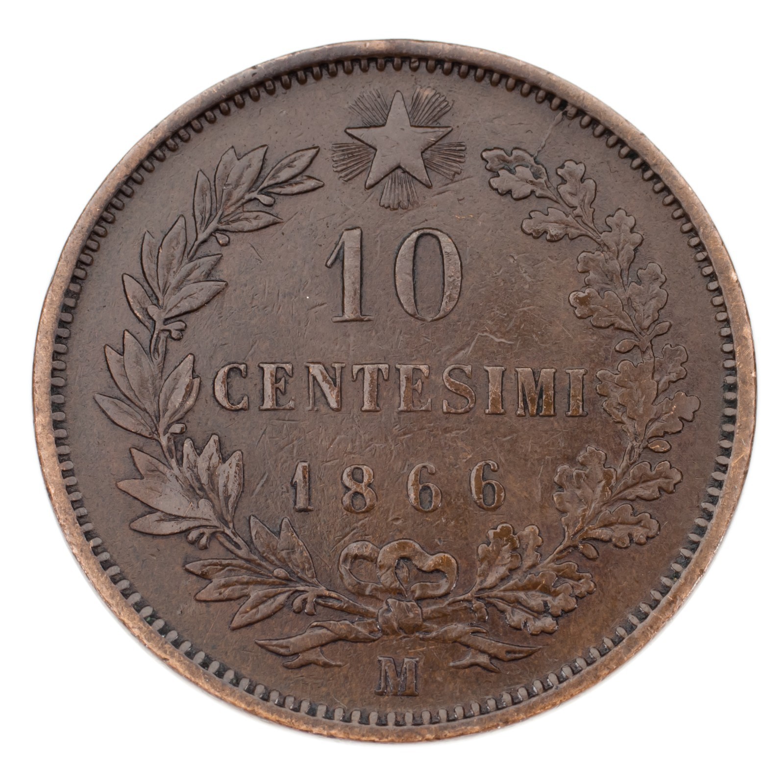 - 1866-M Italia 10 Centesimi IN XF Condizioni Km #11.1