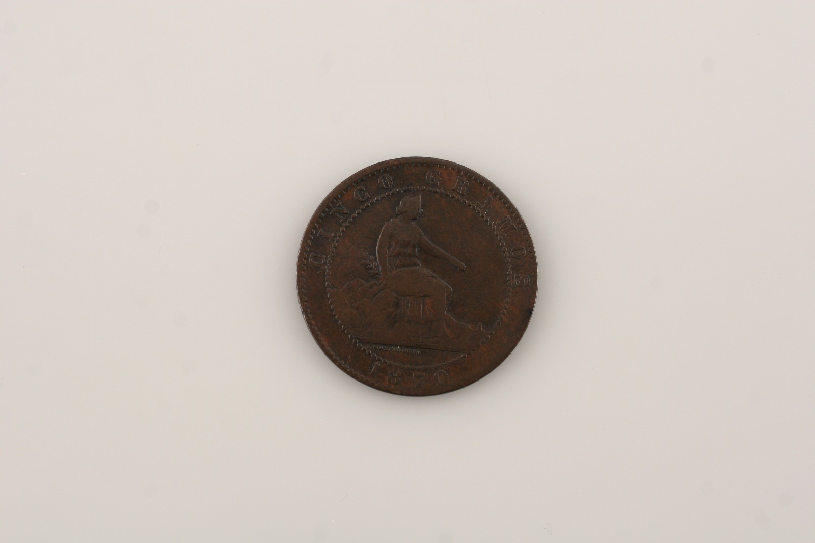 1870-OM Spagna 5 Centimos (XF+) Condizione Extra Fine Plus