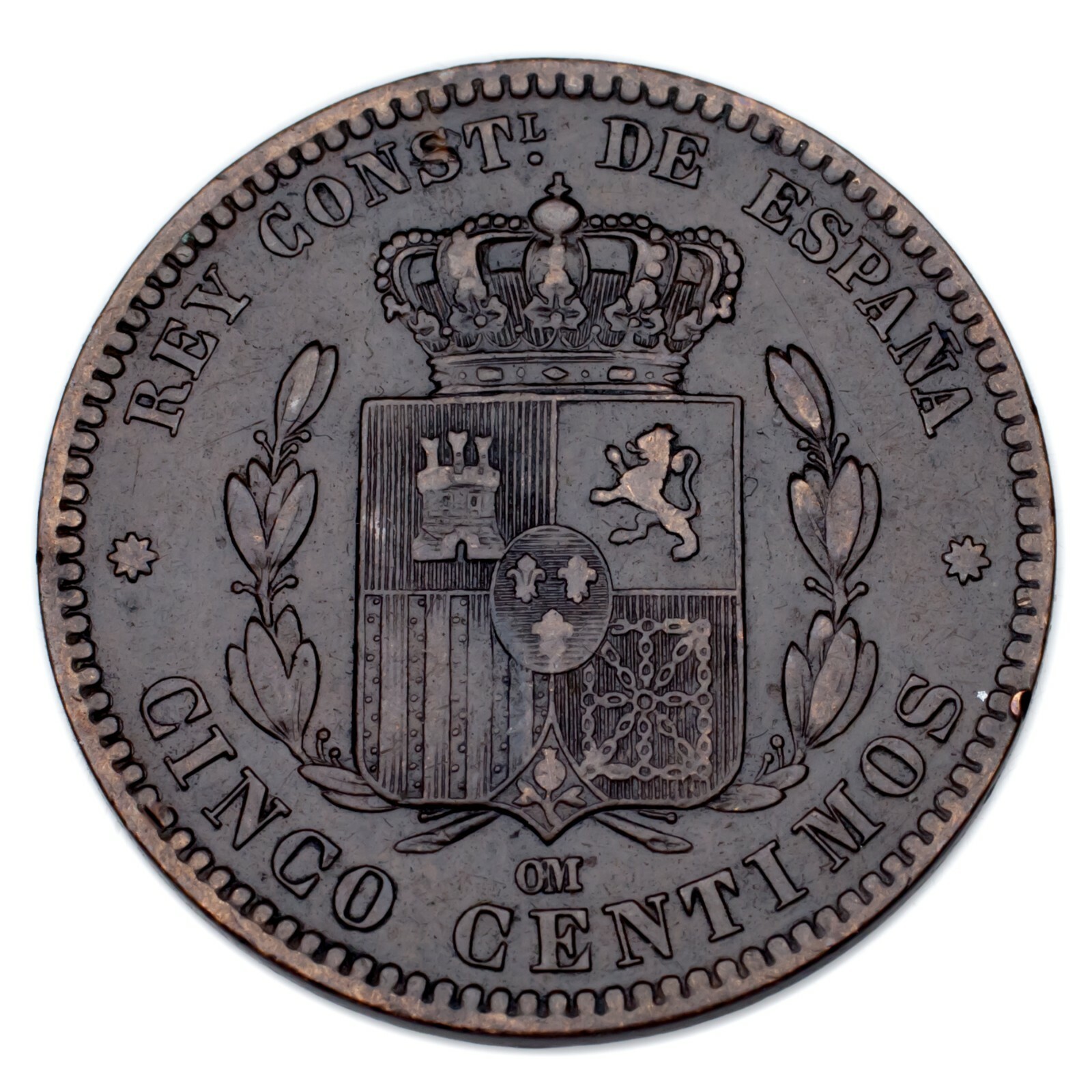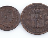 1878-1905 Espagne Pièce de Monnaie Lot (2pcs) 2 & 5 Centimos (Vf-Unc)