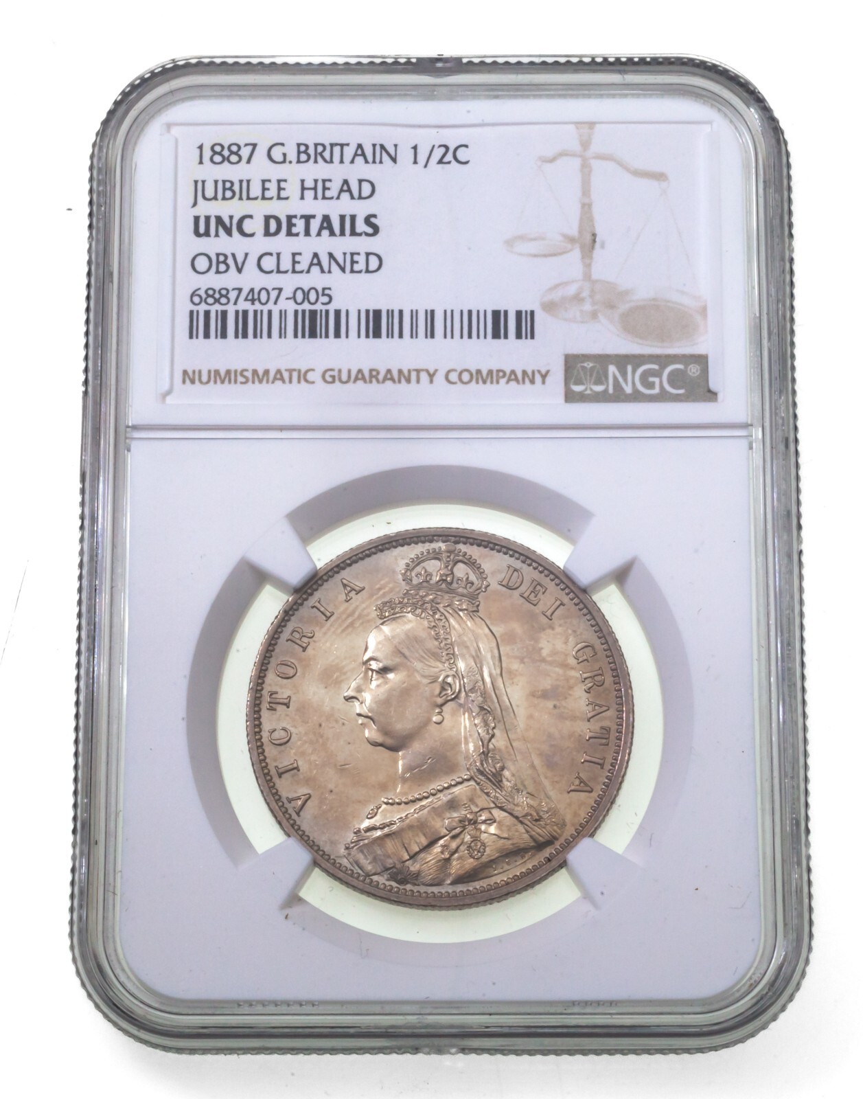 1887 G. Britain 1/2 Crown Jubilee Head Coin, UNC Details par NGC, KM 764