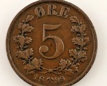 - 1899 Norvège 5 Ore (VF) Très Fin État