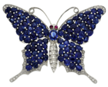 - 18k or Blanc 10.30ct Saphir 1.15ct Diamants Et Rubis Papillon pendant-Brooch