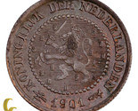1901 Pays-Bas 1/2 Cent Coin au Condition KM # 109.1