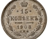 1908 Russie 15 Kopek Pièce Argent En XF, Y#21a.2
