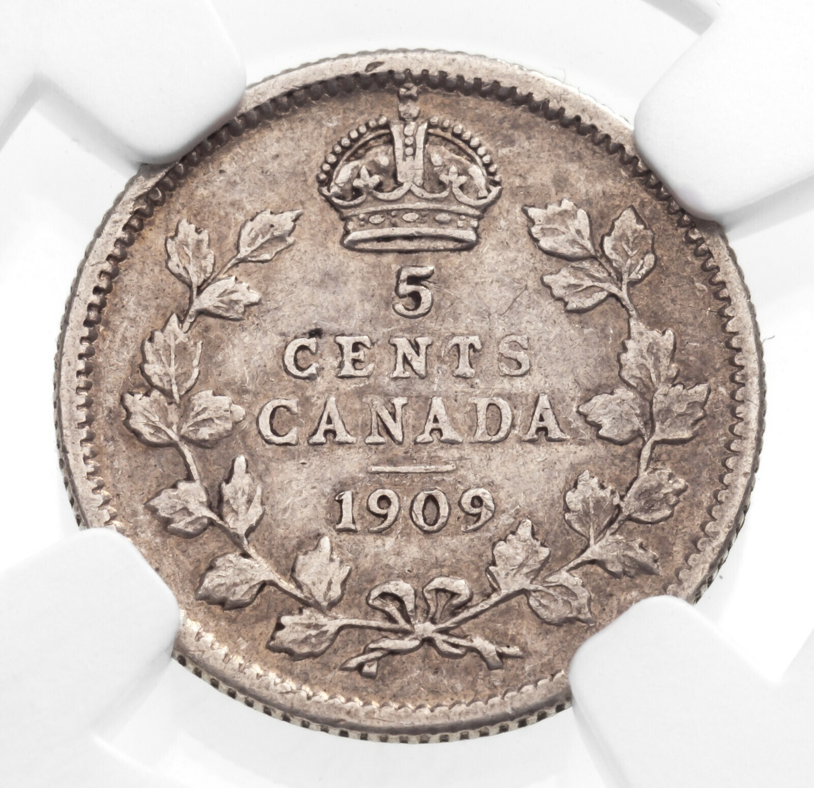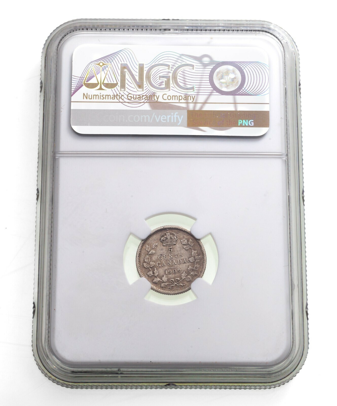 1909 Canada 5 Centimes Érable Feuilles Croix / Nœud Cravate Classé Par NGC Comme