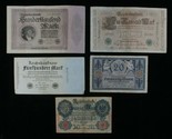 - 1910-1923 Germany 5-Notes Set 20 Mark to 100,000 MARK Empire & Weimar