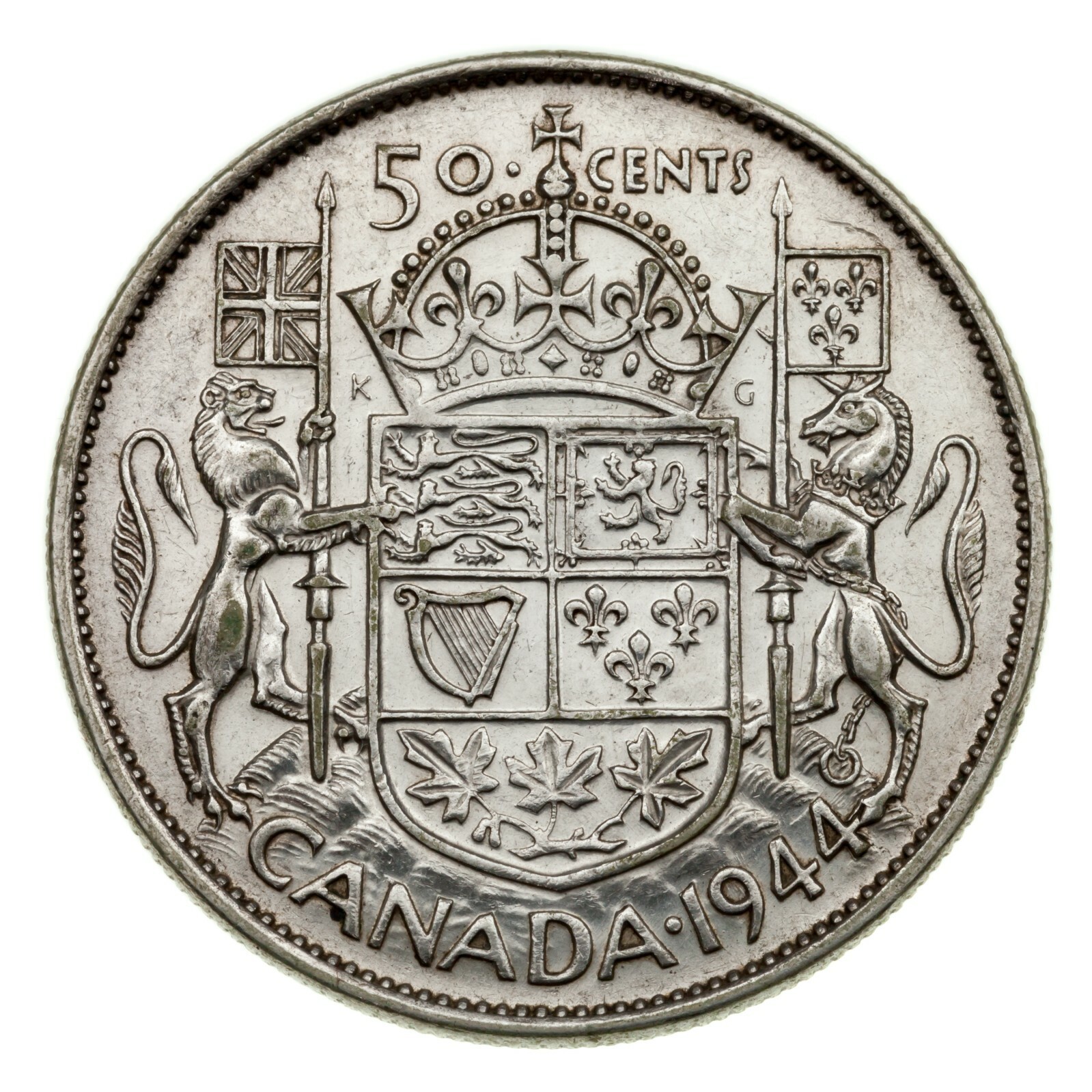 - 1944 Canada 50 Cents Coin (UNC) Uncirculated Condition KM# 36