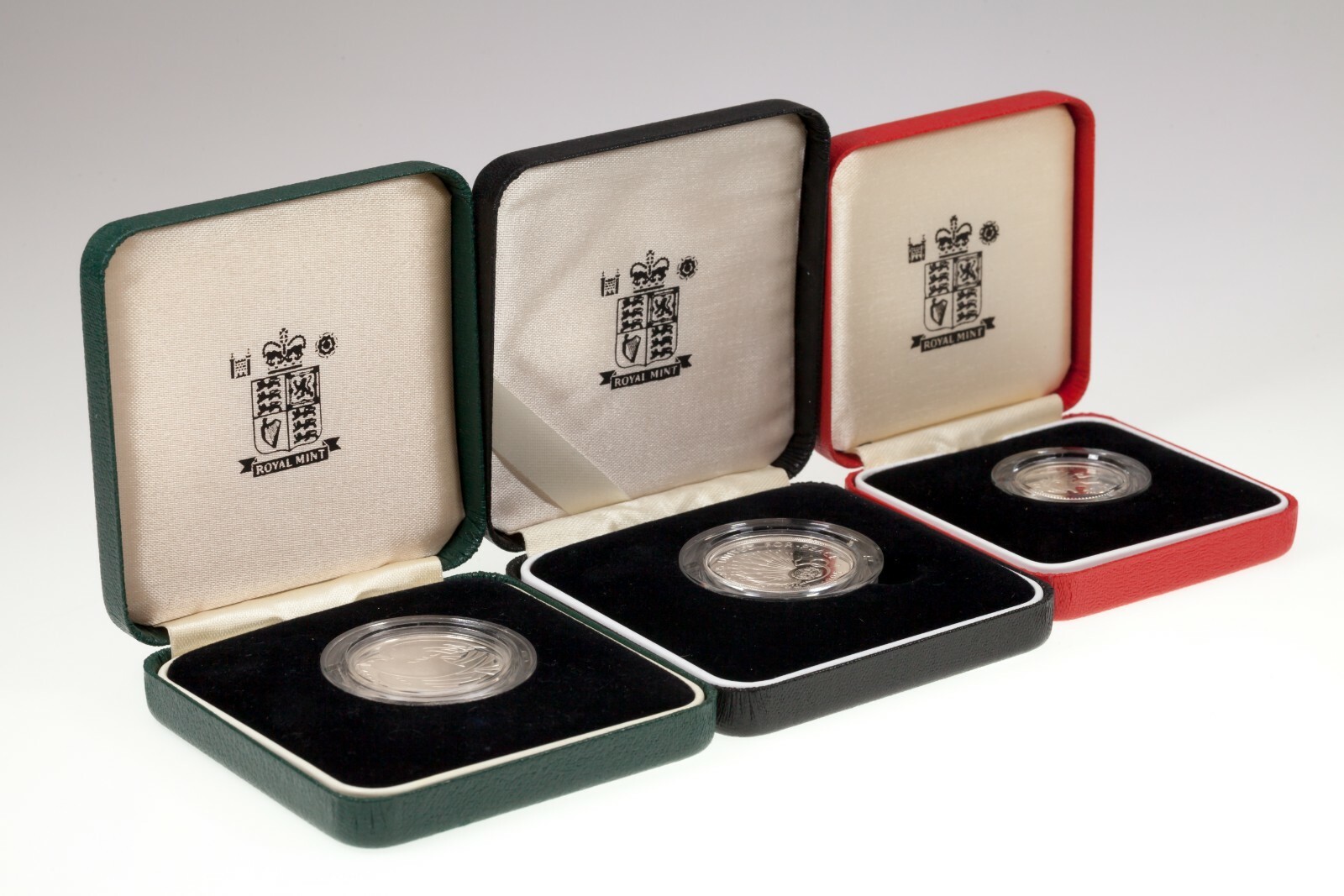 1995 Grande-Bretagne 1 et 2 COINS EN SILFE PROVE OU PIEDFORT COIN LOT OF 3