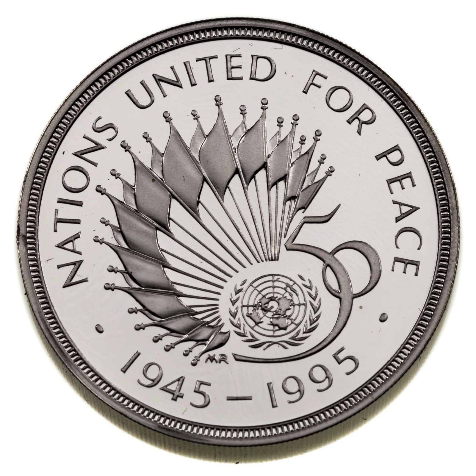 1995 Grande-Bretagne Silver Proof Two Pounds Coin, 50e anniversaire - Nations Unies, KM 971A