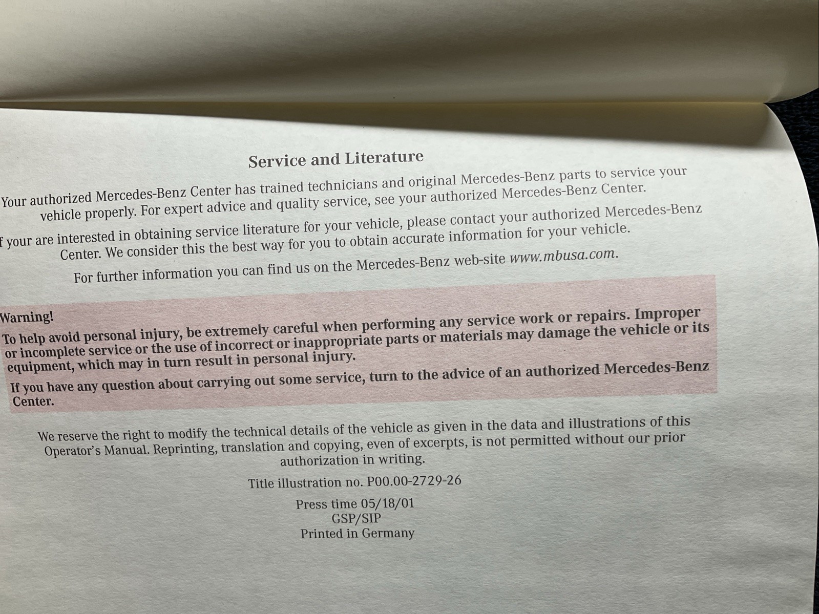 2002 CLK-Class Cabriolet Operator's Manual