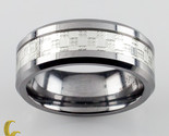 Uomo Carburo di Tungsteno Fascia Anello W/ Verde Marmo Righe Misura 8.25
