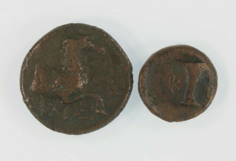 Altes Griechenland 2-Coin-Set // 3. Jahrhundert v. Chr. Kyme / Cyme aeolis // Vase