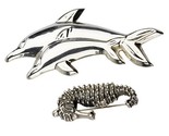 Argent Sterling Mer Créatures Deux Broches, Mer Cheval, Mère & Fils Dauphins