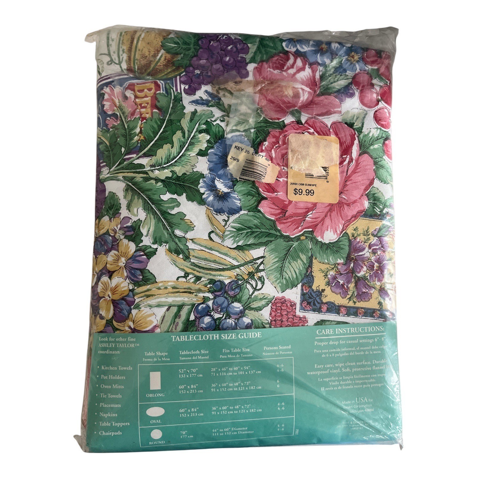 Ashley Taylor Concepts Floral Vegetables Tablecloth 60x84 Vinyl Flannel Backed Open Package USA