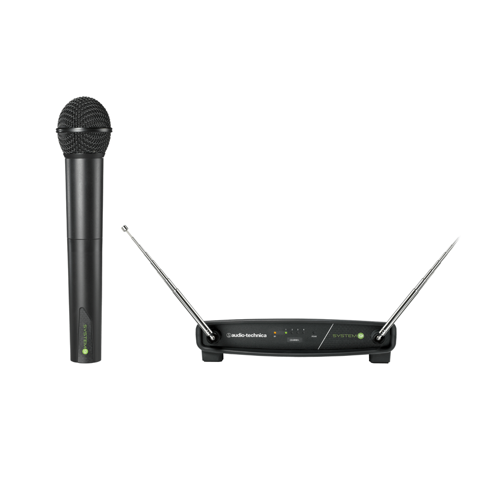 ATW-R900a receiver and ATW-T902a handheld dynamic unidirectional microphone/transmitter. Includes AT8456a Quiet-Flex? stand clamp.