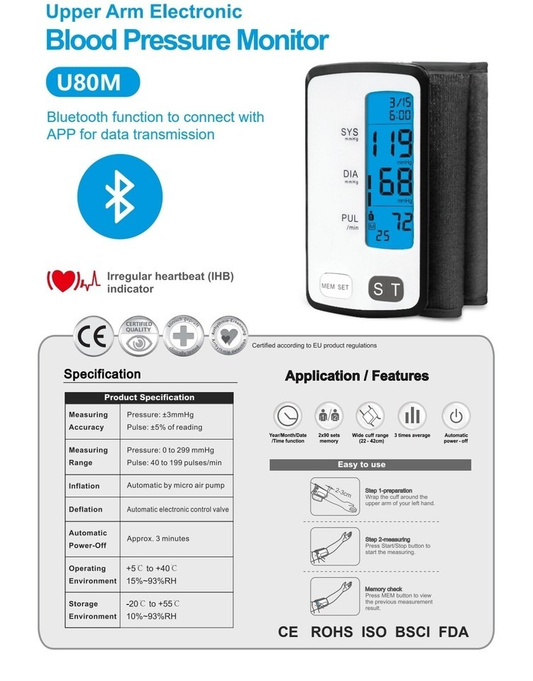 - Blood pressure monitor Bluetooth Upper Arm Electronic Automatic with Bluetooth.