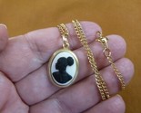 - CA30-123 RARE African American LADY white + black CAMEO brass Pendant necklace