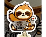 The sloth-themed design of the badge reel is a fun and unique way to show off ones personality. The "need more coffee" text is a humorous way to express a common workday struggle