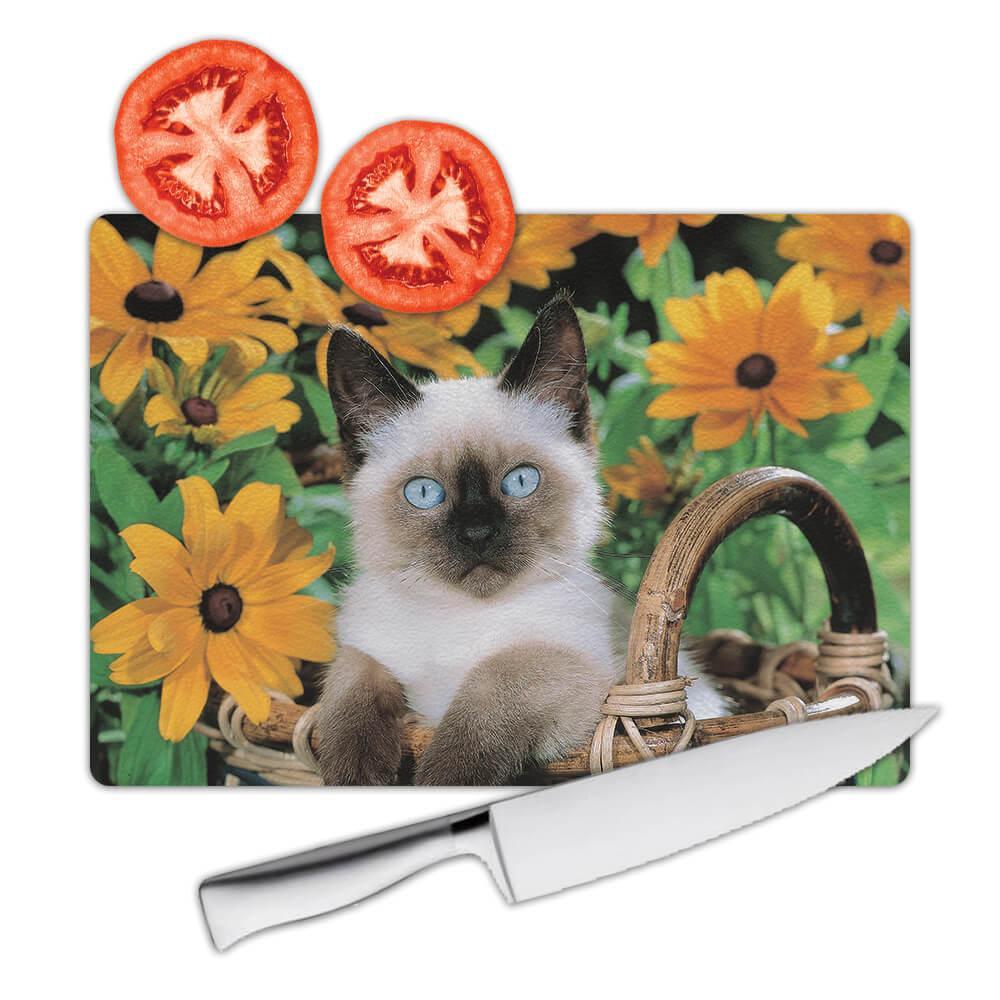 Cat Basket : Gift Cutting Board Yellow Flowers Floral Kitten Pet Animal Nature