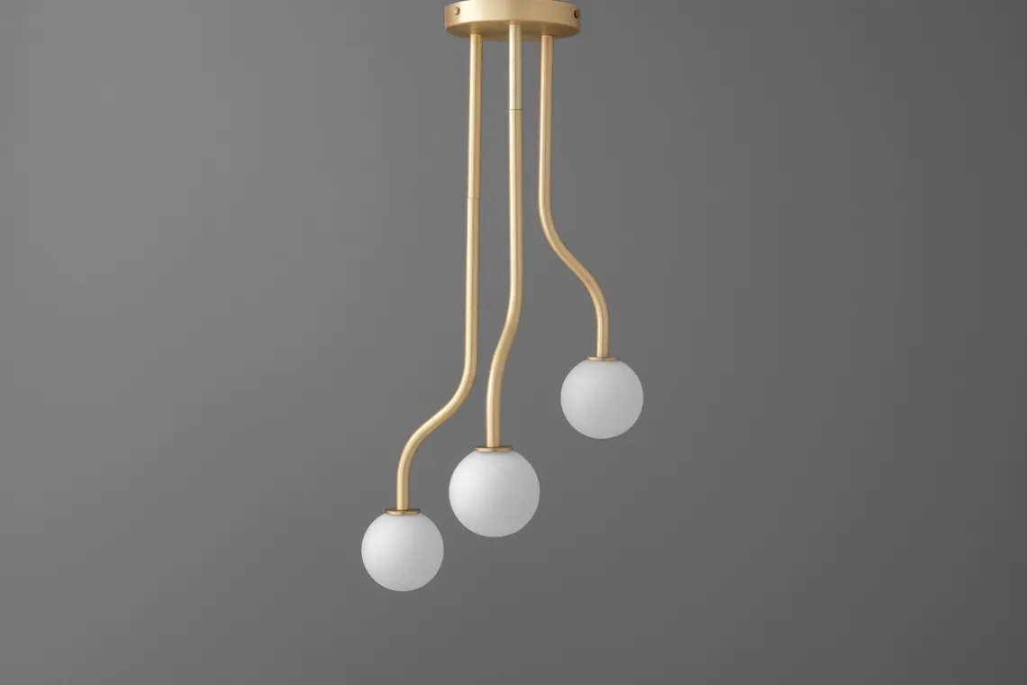 Add a touch of modern elegance to your space with this sculptural three-globe chandelier. Featuring gracefully curved brass arms that hold frosted globes, this chandelier creates a dynamic yet refined look. Its unique, organic design is perfect for creating a statement in any room, from dining areas to living spaces. The soft glow of the frosted globes provides warm, ambient lighting, making this chandelier as functional as it is stylish. Ideal for contemporary and minimalist interiors, this piece will elevate your décor with its sophisticated simplicity.
