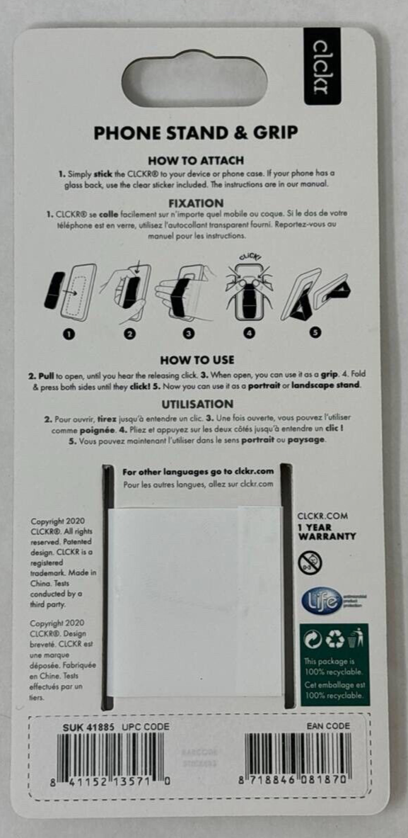 Clckr Universal Stand and Grip Phone Holder Smooth Mount for iPhone 11 12