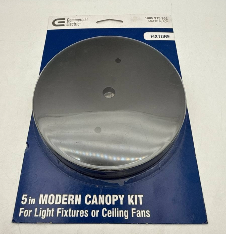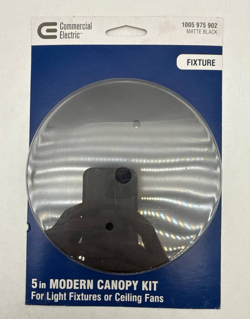 Commercial Electric Modern Canopy Kit for Ceiling Light Fixtures Matte Black 5"