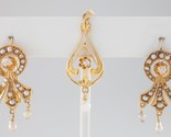 Vintage 14k Yellow Gold Diamond Seed Pearl Pendant Earring Set