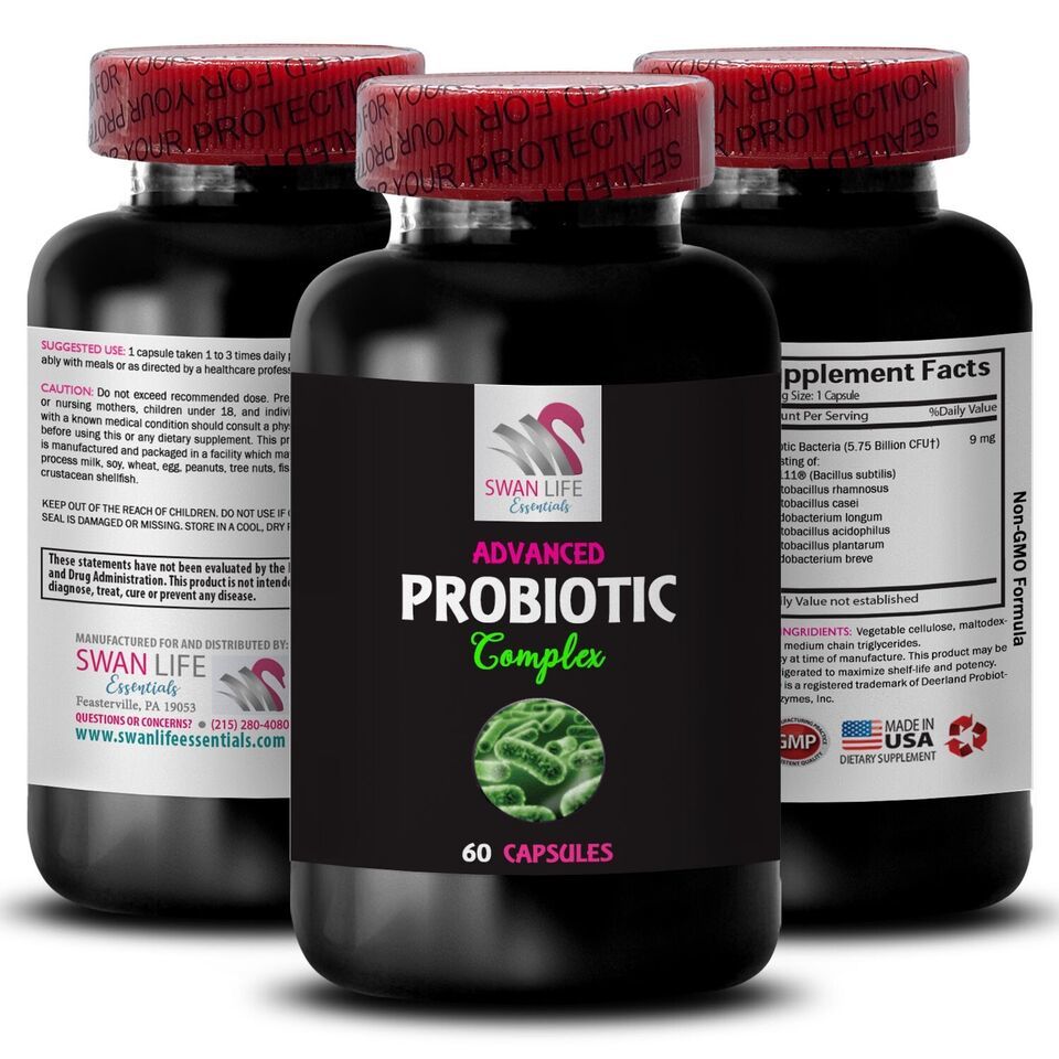 Digestive comfort - ADVANCED PROBIOTIC COMPLEX - Natural vitality 3 Bottles 180 Capsules ADVANCED PROBIOTIC COMPLEX GUT WELLNESS IMMUNE SYSTEM COGNITIVE PERFORMANCE ADVANCED PROBIOTIC COMPLEX: Our powerful dietary supplement designed to support a balanced internal environment and promote optimal well-being. This advanced formula combines the natural benefits of Lactobacillus rhamnosus, Lactobacillus casei, Bifidobacterium longum, Lactobacillus acidophilus, Lactobacillus plantarum, Bifidobacterium breve with a blend of potent ingredients known for their properties. ADVANCED PROBIOTIC COMPLEX GUT WELLNESS: An Advanced Probiotic Complex is designed to enhance gut wellness by introducing beneficial bacteria that support a balanced microbiome. These probiotics help promote healthy digestion, reduce bloating, and alleviate discomfort after meals. ADVANCED PROBIOTIC COMPLEX IMMUNE SYSTEM: Incorporating an Advanced Probiotic Complex into your daily routine can support your immune system. Probiotics play a crucial role in maintaining a robust defense mechanism by supporting the production of antibodies and activating immune cells. ADVANCED PROBIOTIC COMPLEX COGNITIVE PERFORMANCE: An Advanced Probiotic Complex can significantly support cognitive performance by promoting a healthy connection. Probiotics help maintain a balanced microbiome, which is linked to improved brain function and memory. ADVANCED PROBIOTIC COMPLEX: Our Premium Advanced Probiotic Complex is made with the high-quality ingredients, Vegan, Non-Gmo, Gluten-free. This solution is safe and effective for wellness. Manufactured in an NSF certified and GMP compliant facility, SWAN LIFE ESSENTIALS ensures strict adherence to quality standards throughout the production process.
