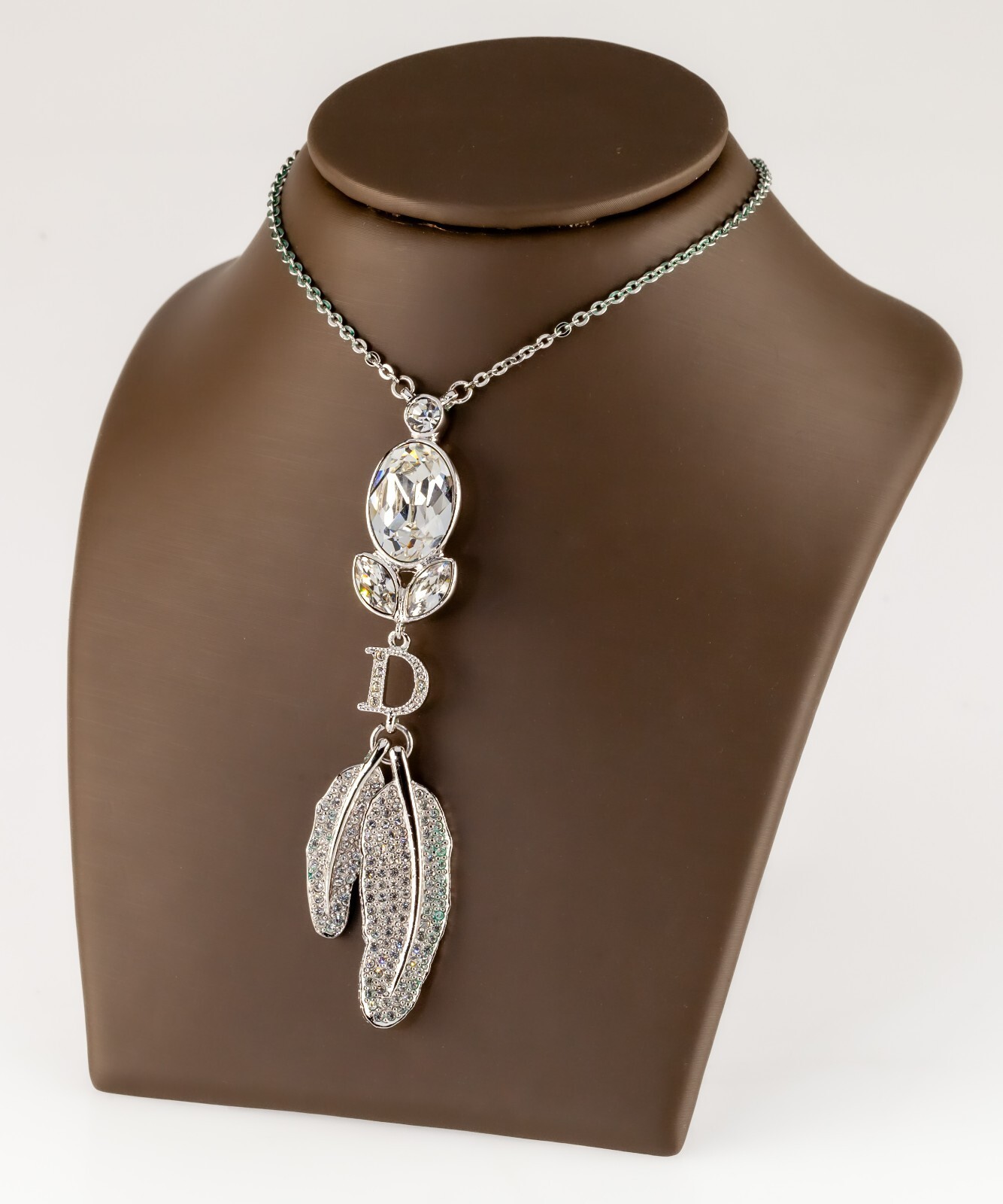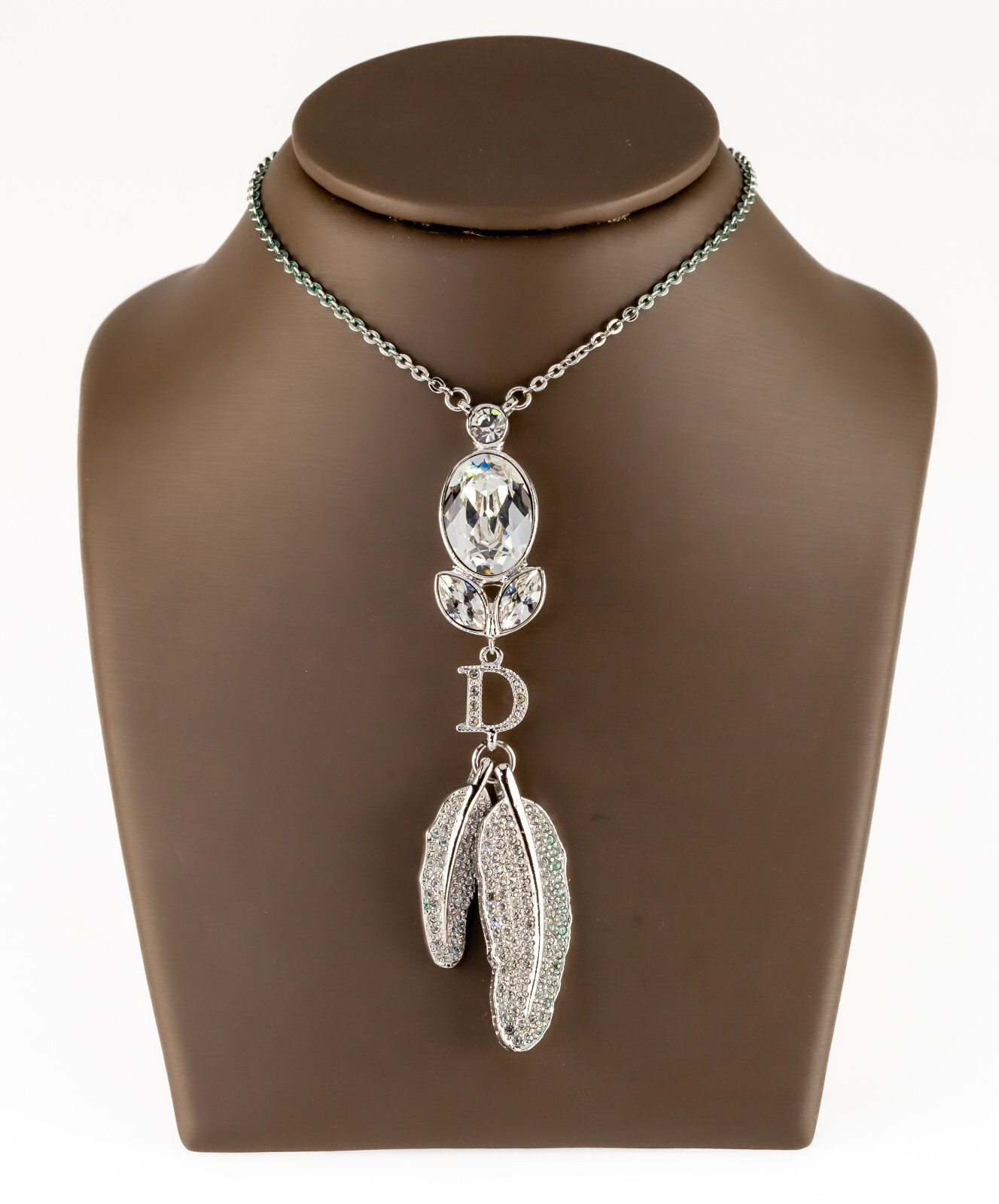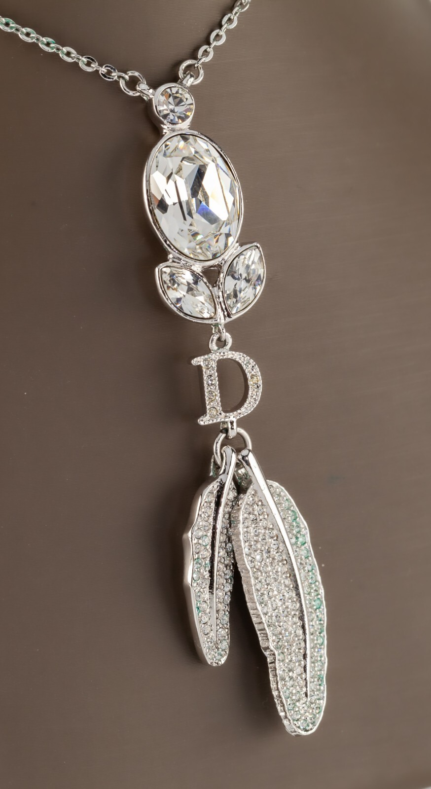 - Dior Crystal Costume Pendant with Feather Motif 18" Chain w/ Original Pouch