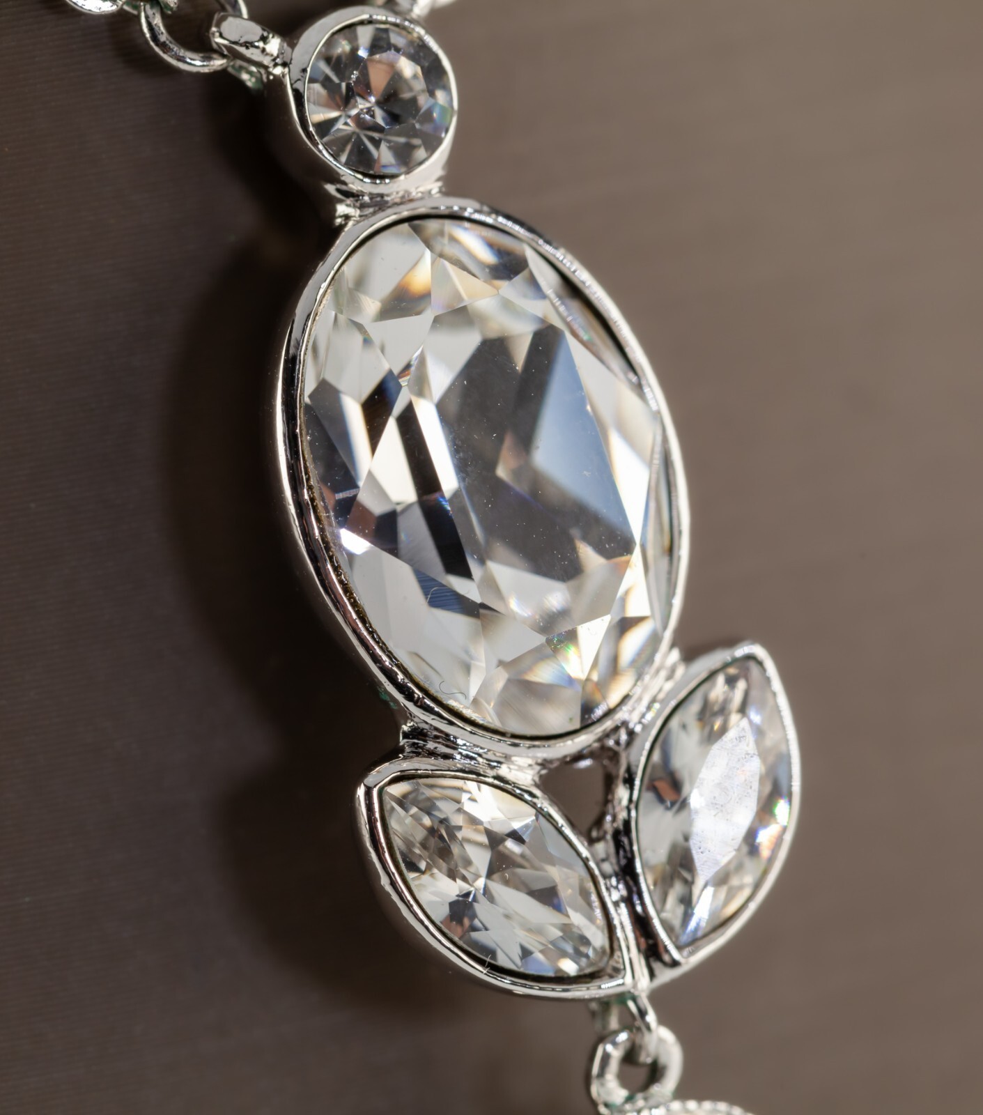 Features Oval and Marquise Crystals with Pave Crystal Accents on Feather Motifs