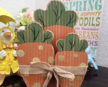 Up for sale is this adorable sign for your Easter decor the sign has 3 carrots with gold glitter polka dots. You can either stand on a table top or hand on a wall. Sign is soooo cute!! Measures approx 8" wide x 11.75" tall. New.