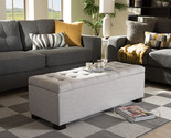 - Eleri Grayish Beige Fabric Upholstered Grid-Tufting Storage Ottoman Bench