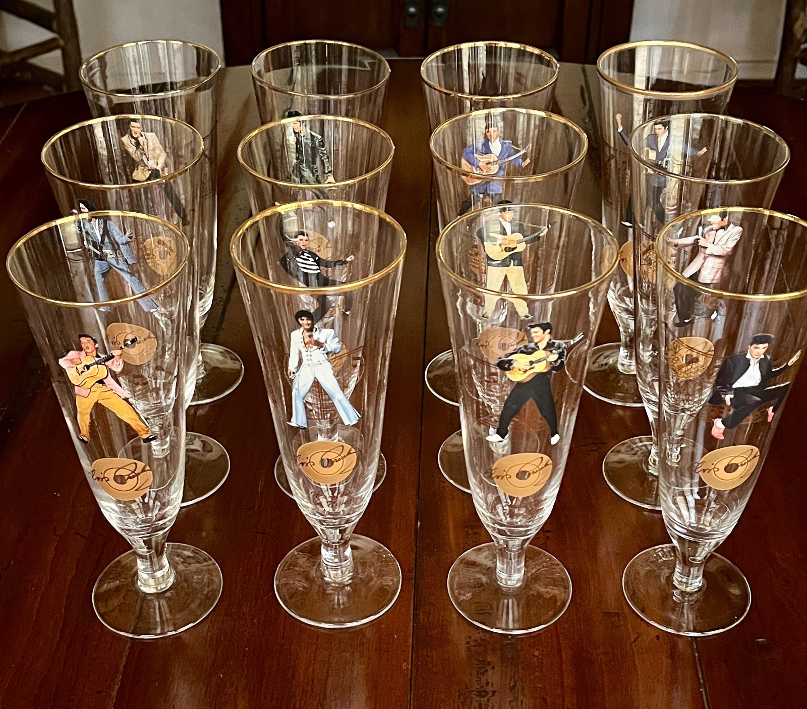 ELVIS PRESLEY GLASSES SET 12 Pilsner Bradford Exchange Collection