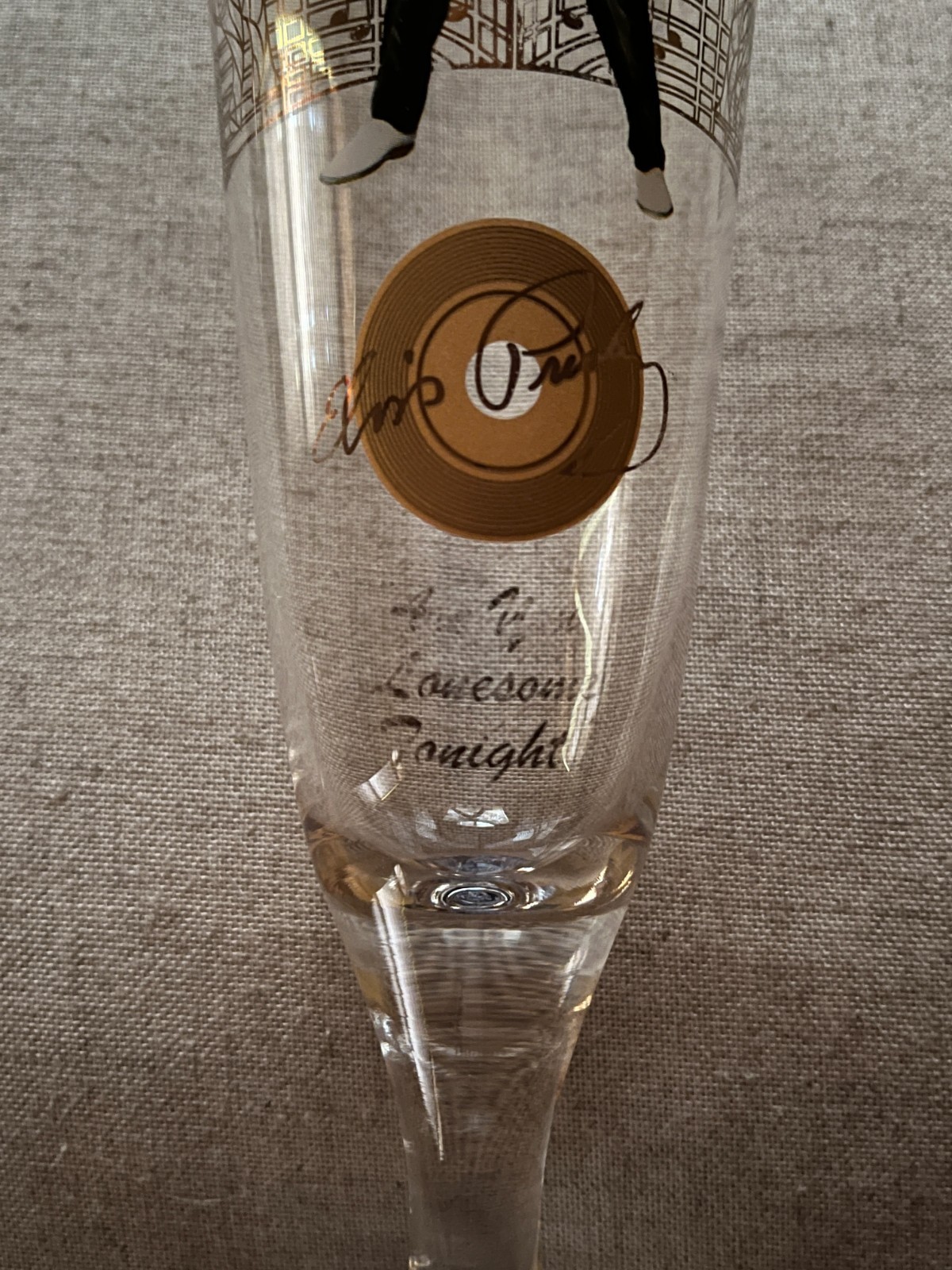 Each glass has a different design of artist representing song on glass