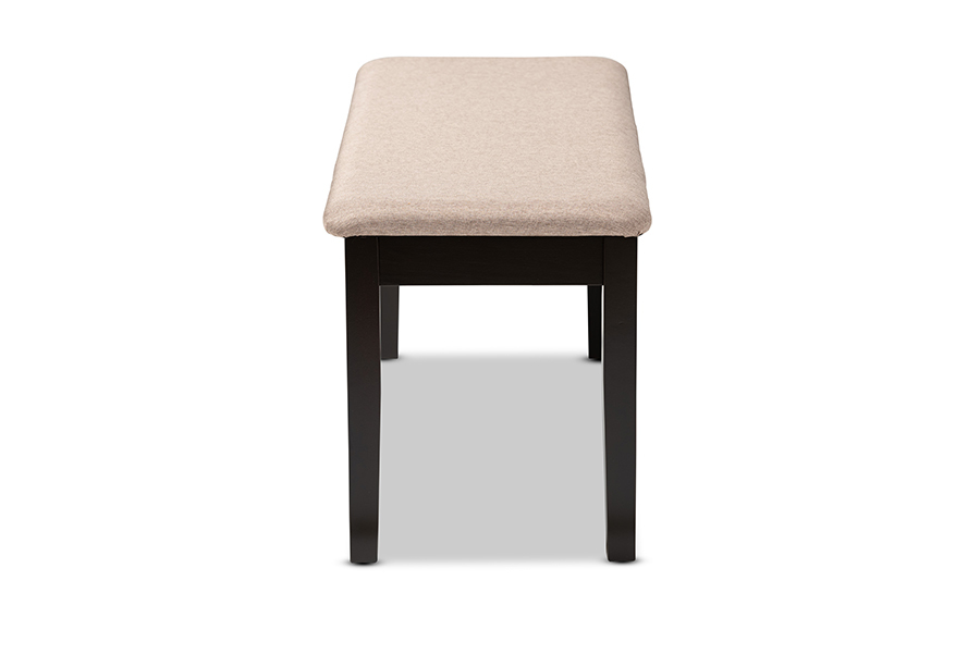 - Flannery Sand Fabric Upholstered and Dark Brown Dining Bench