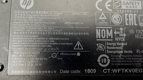 - Genuine Used HP Laptop Charger 65W AC Power Ad 854055-002 710412-001 19.5V 3.33A