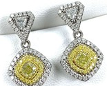 Goccia Orecchini 1.62 TCW Cuscino Cubico Diamante Giallo 14k Oro Bianco