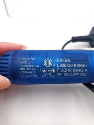Helen of Troy 1" Model 1574 Heated Hot Air Curling Iron Brush With Blue Handle. Tested Works. Please review photos for item details. Give me a follow as I list from estate sales for new and vintage items.