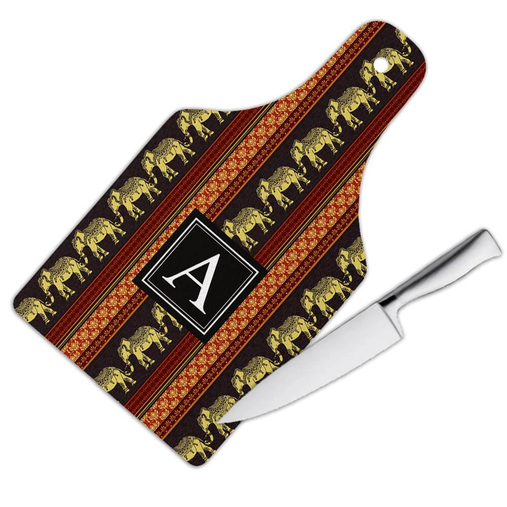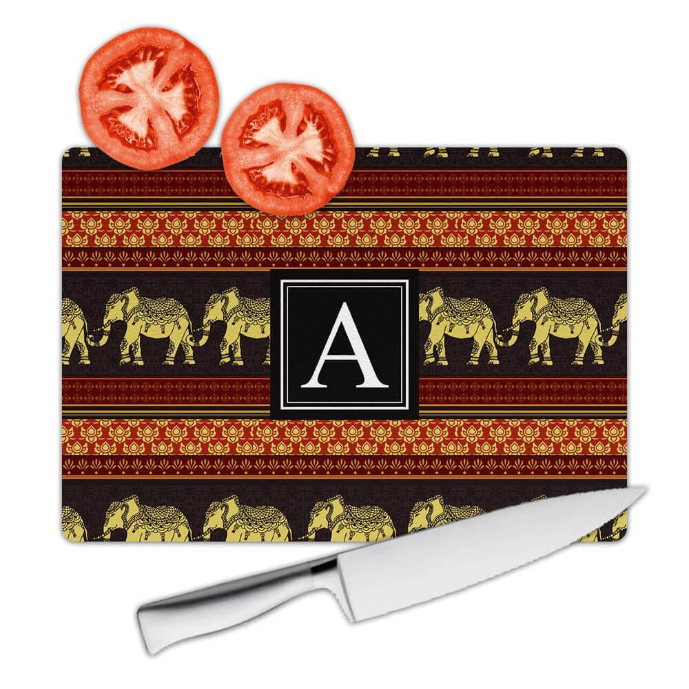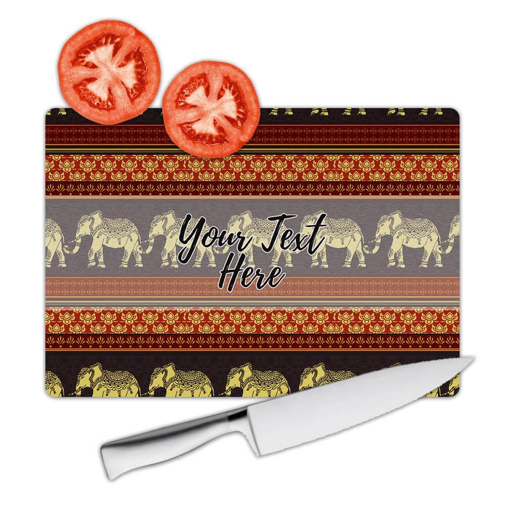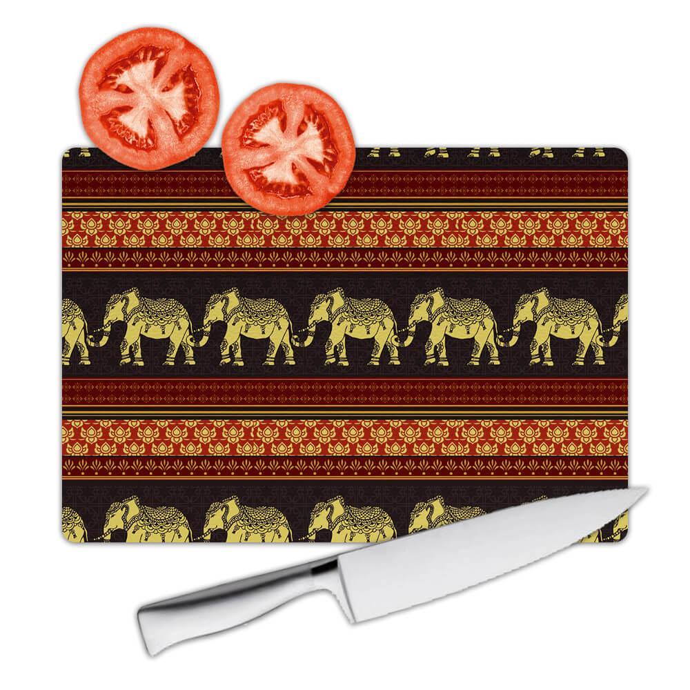 Indian Print : Gift Cutting Board Elephants Mandalas Ornament Pattern Border Hen