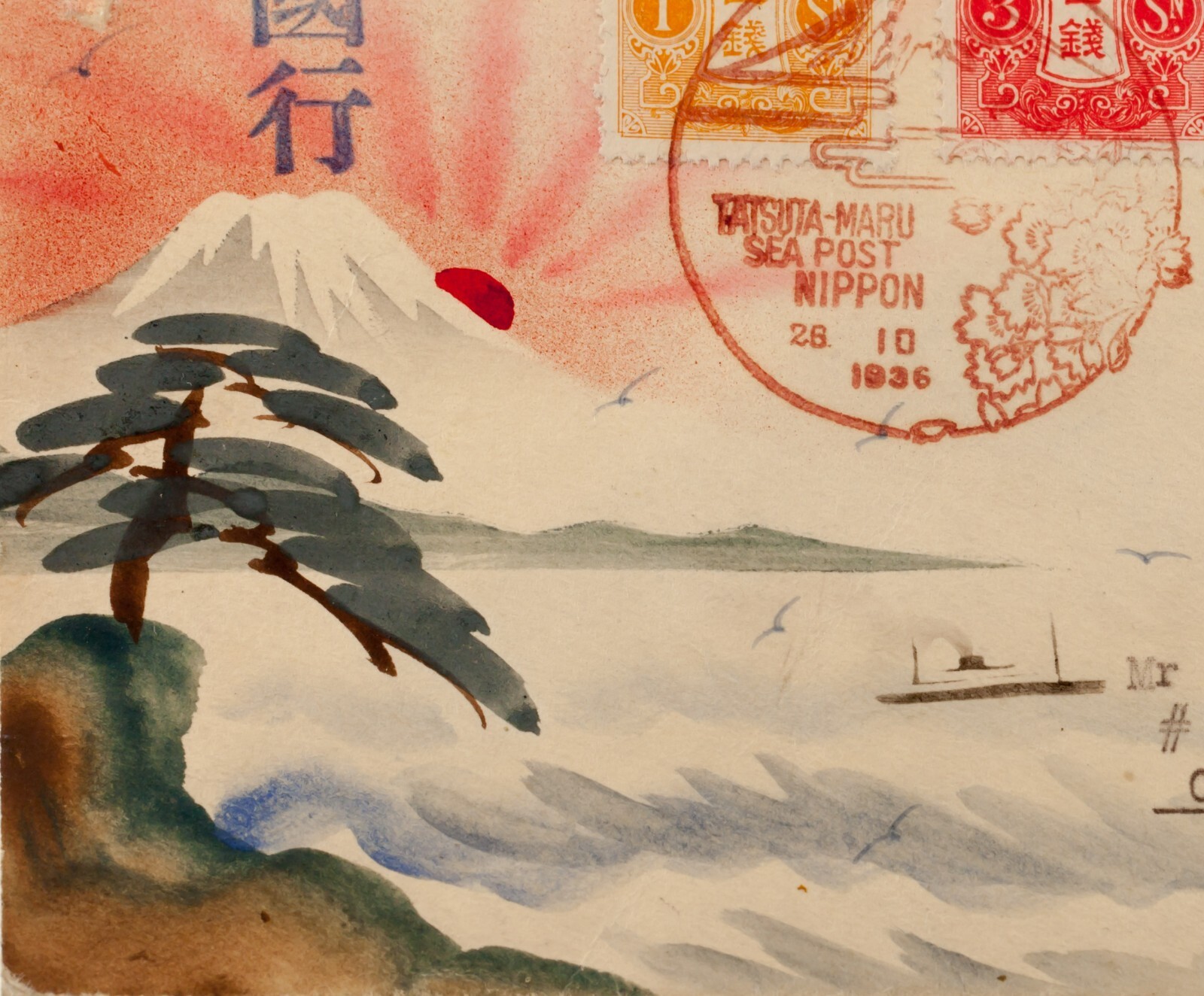 - Karl Lewis 1936 Hand-Painted Watercolor Cover Japan to IL, USA Tatsuma Maru C-1