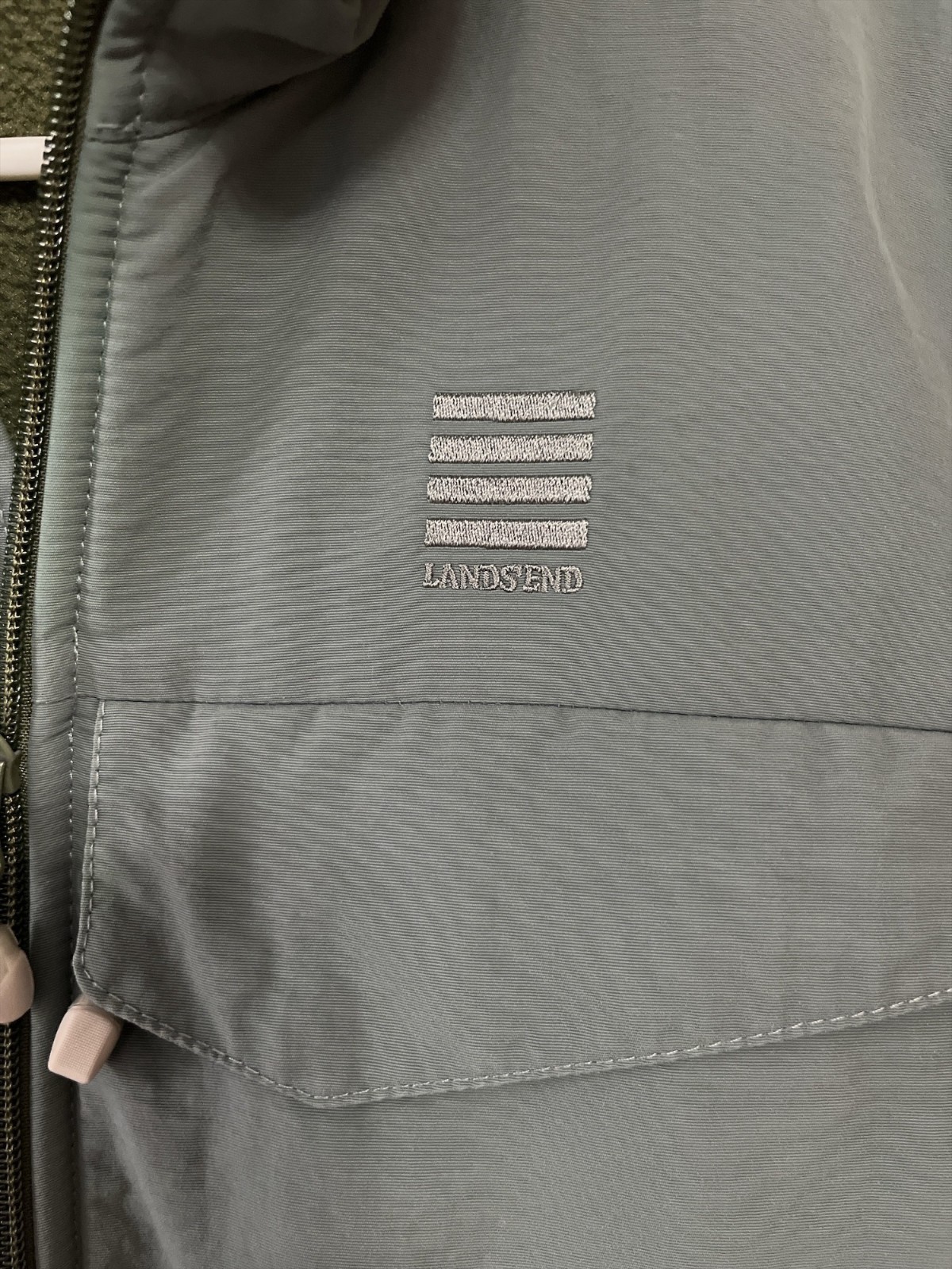 - Lands’ End Men’s Medium Green Fleece Jacket with Nylon Shoulder Panels