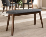 Minimalist and refined, the Leanora bench is the final piece of furniture you've been needing to tie your room together. The mid-century modern-inspired design is evident in the gracefully tapered, angled legs of the bench. The Leanora is made to last with a sturdy, solid walnut-finished rubberwood frame. The bench top is foam-padded for comfortable seating, and upholstered in a chic dark Grayfabric. This dynamic bench will look fantastic at your dining table, or even in your living room and other shared spaces. Made in Malaysia, the Leanora requires assembly.