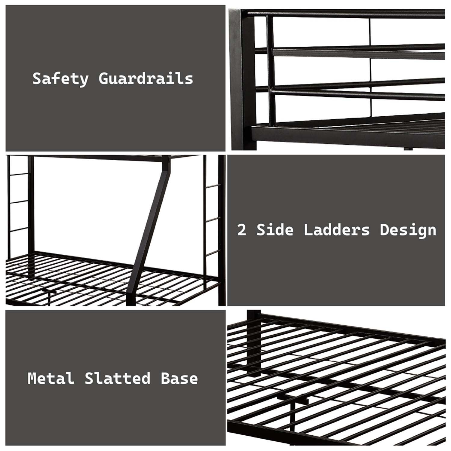 The Limbra contemporary bunk bed collection is an ideal choice for any youth bedroom. Featuring sturdy metal construction in black sand finish, metal slat system included, two built-in side ladders, and full-length guardrails that will keep your child safe.