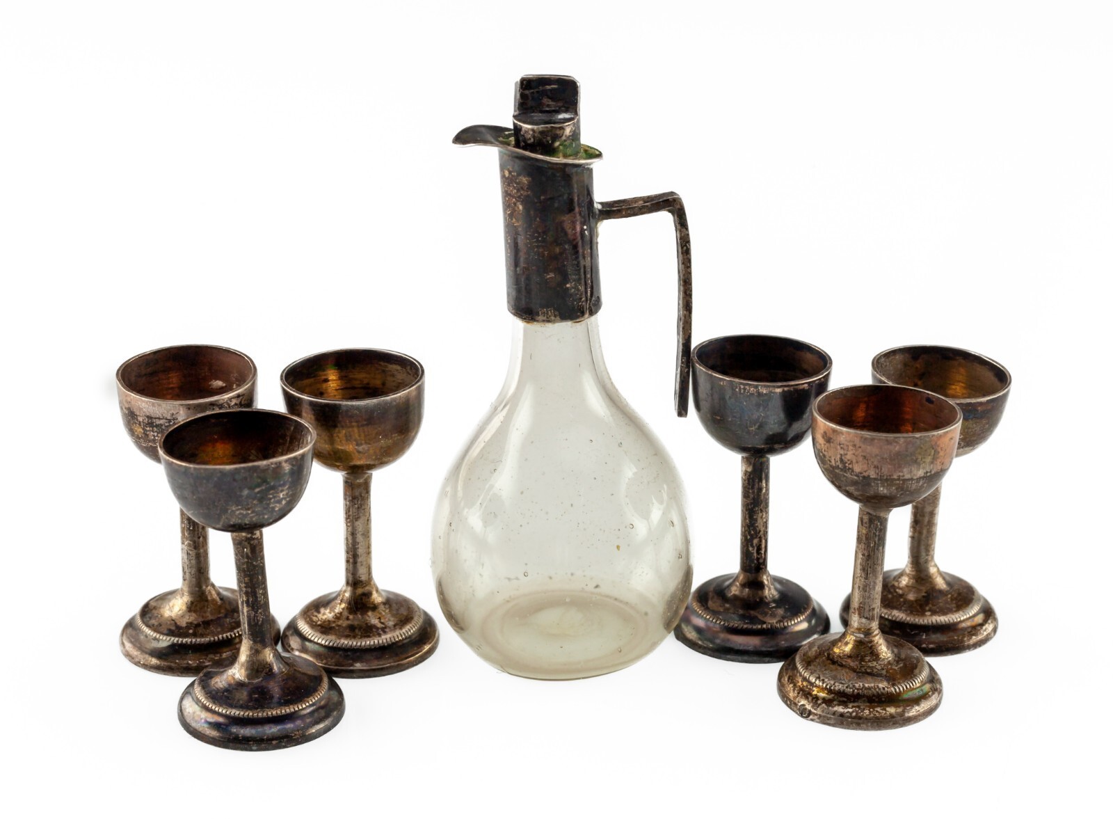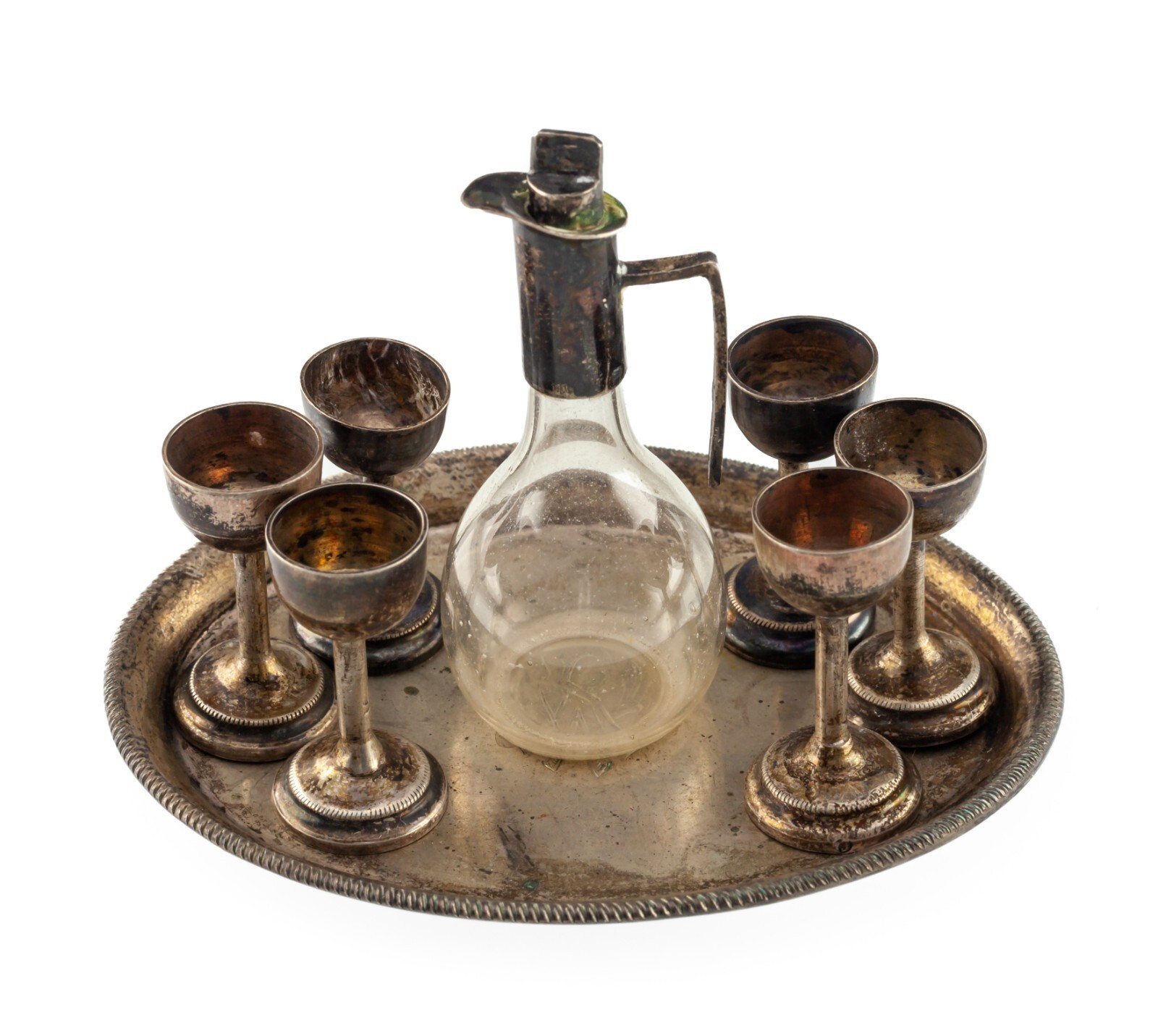 - Lot of 2 Antique 1:12 Dollhouse Sterling Silver Drink Sets (Tea + Wine)