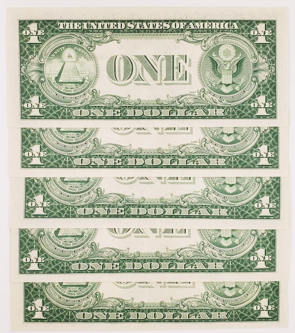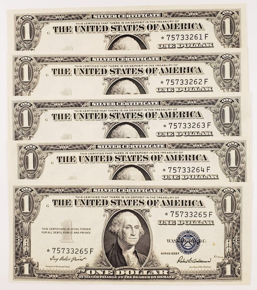 - Lot of 5 Consecutive 1935-F Silver Certificate Star Notes FR #1615 AU