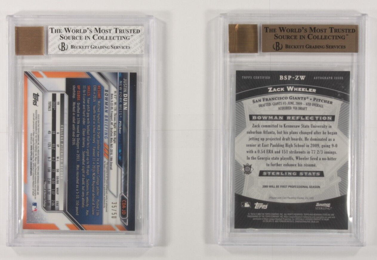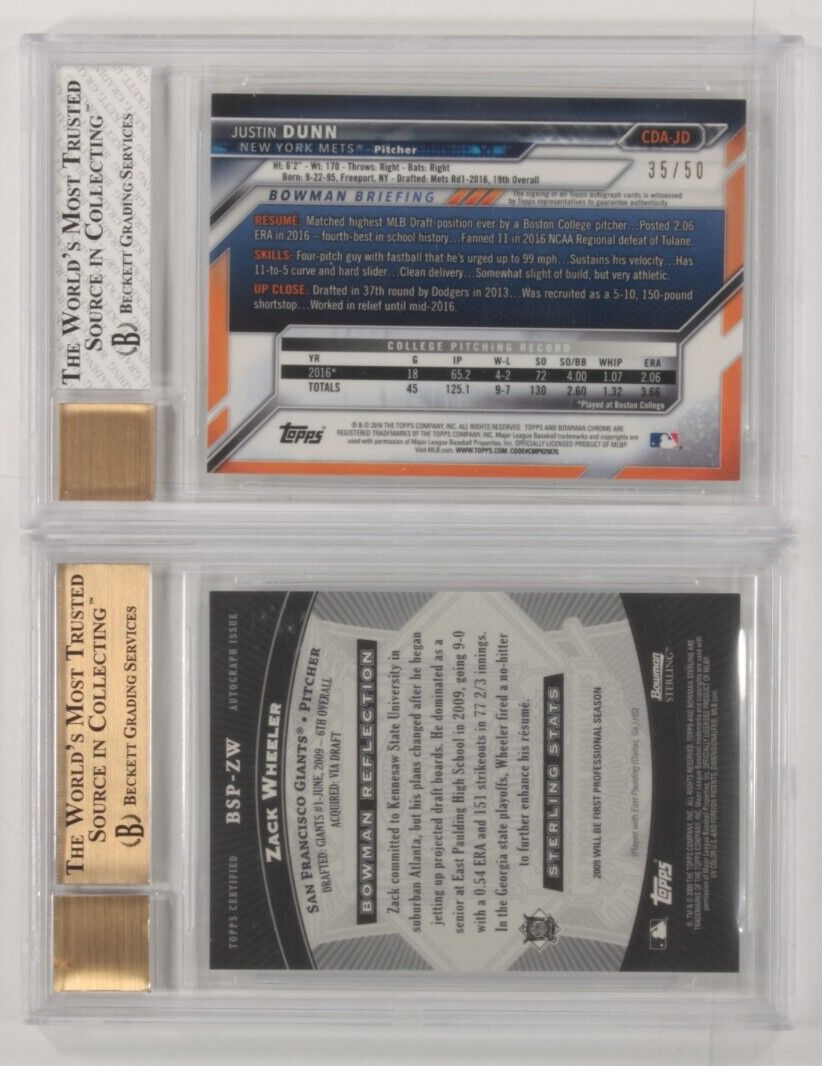 Lotto di 2 bg di BGS Bowman Zack Wheeler e Justin Dunn Baseball Cards