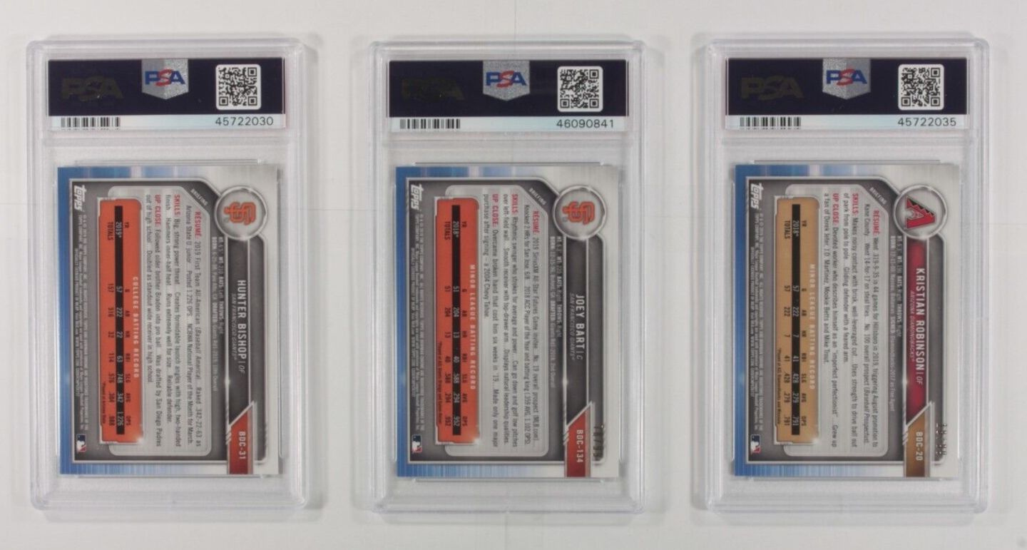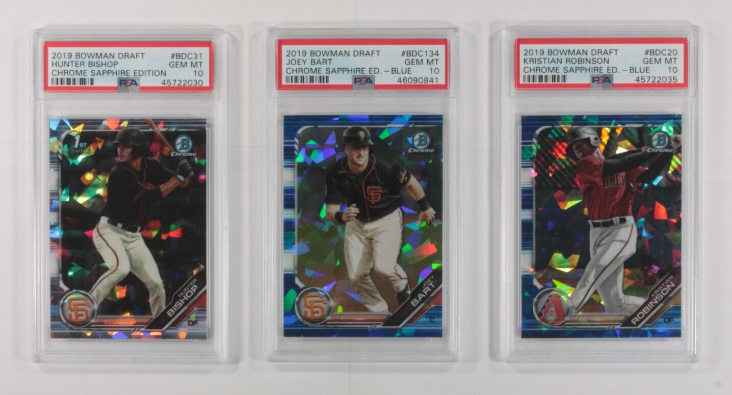 Lotto di 3 PSA 10 2019 Bowman Chrome Draft Sapphire Edition Bishop, Bart, Robinson