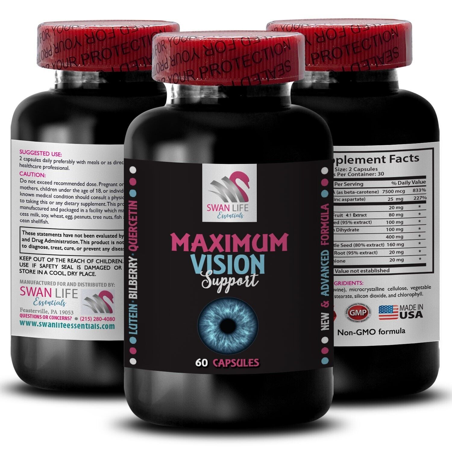 MAXIMUM VISION SUPPORT QUALITY ASSURANCE: Our Premium Maximum Vision Support is made with the high-quality ingredients, Vegan, Non-Gmo, Gluten-free. This solution is safe and effective for your wellness. Manufactured in an NSF certified and GMP compliant facility, SWAN LIFE ESSENTIALS ensures strict adherence to quality standards throughout the production process.