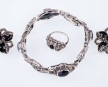 Magnifique Argent Sterling Onyx Et Hématite Ensemble Bijoux Bracelet, Boucles,